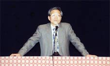 講演はリチウムイオン電池と電気自動車の基礎と最新技術、構造などを中心とした内容となり、大型リチウムイオン電池の開発が電気自動車の発展に大きく関与したことが解説された。また、電気自動車エリーカの実験ビデオが上映され、元F1レーサーの片山右京氏が運転するポルシェ911ターボをエリーカが圧倒的な加速力で追い抜くシーンでは会場から感嘆の声があがるなど、参加者は電気自動車のもつポテンシャルに驚きを隠せない様子であった。 |