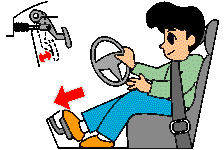 - 床板とのすき間が少なくなっているときや、踏みごたえがやわらかく感じるときは、ブレーキ液の漏れ、空気の混入によるブレーキのきき不良のおそれがあります。