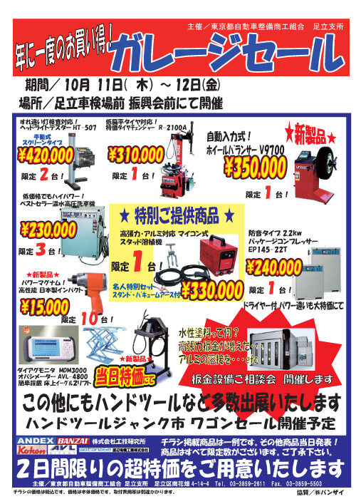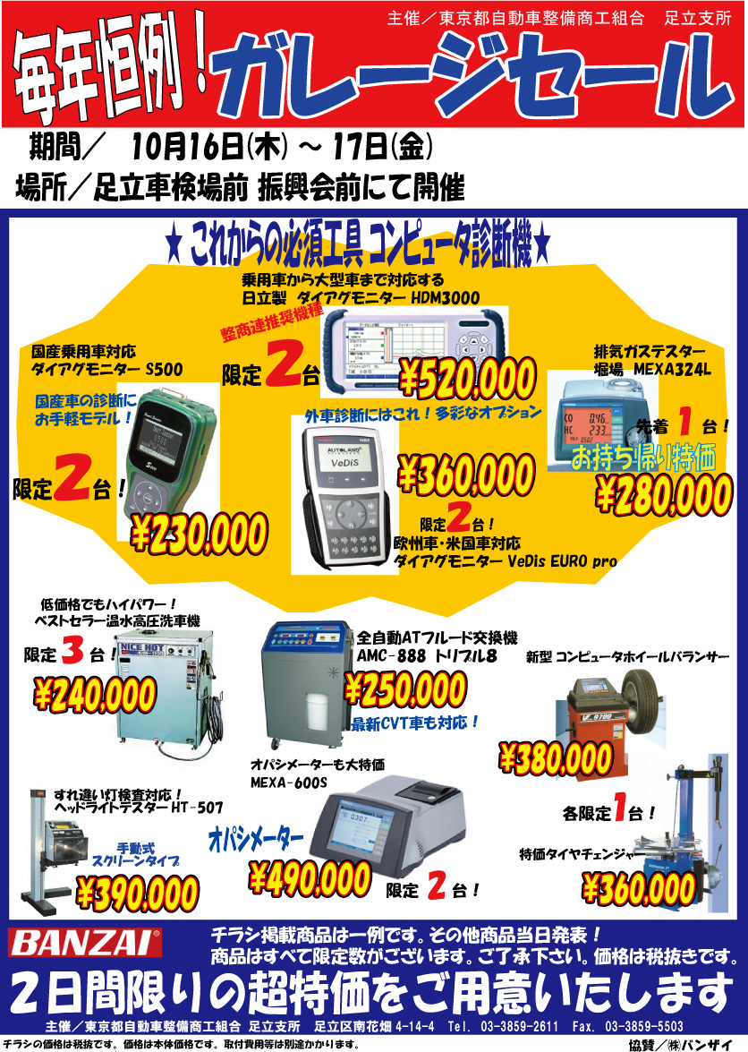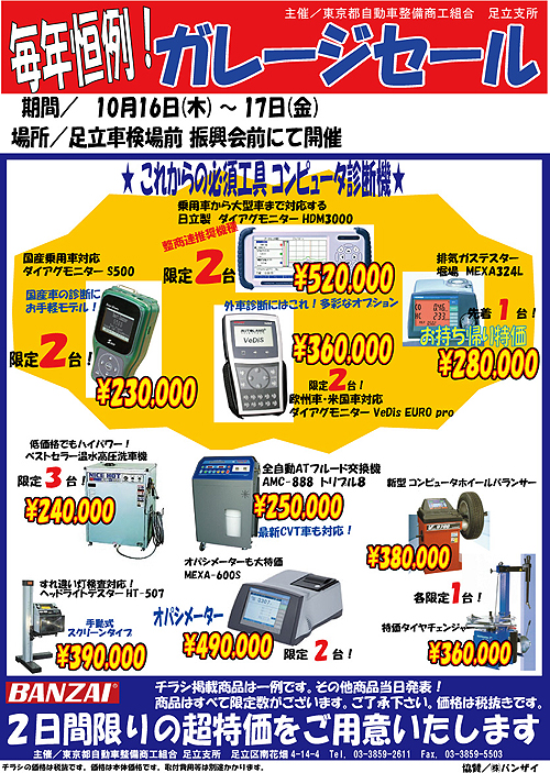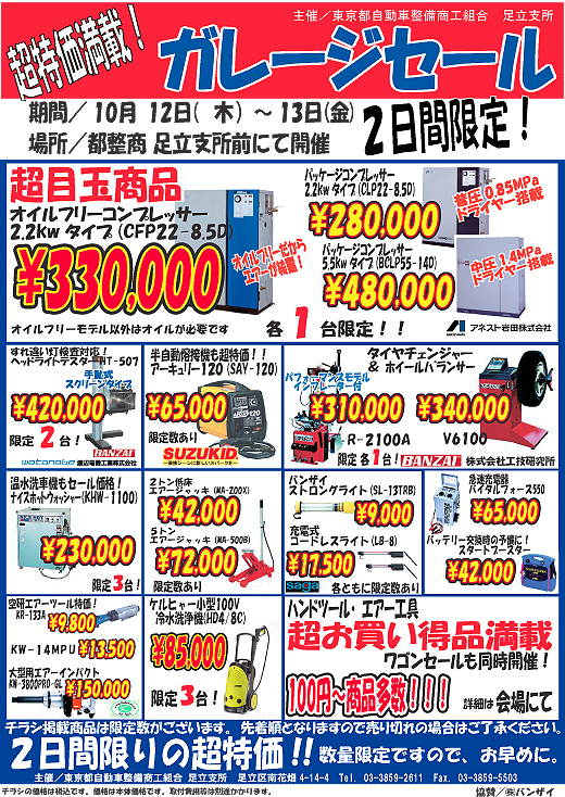 去る10月13日(木)、14日(金)両日に渡り開催致しました「都整商 足立支所 秋のガレージセール」にご来店いただき、誠にありがとうございました。
