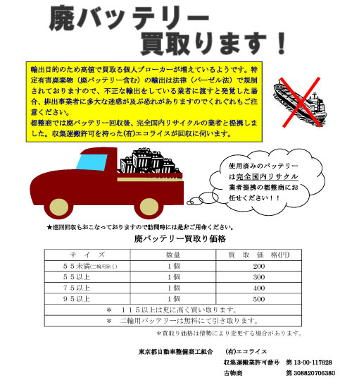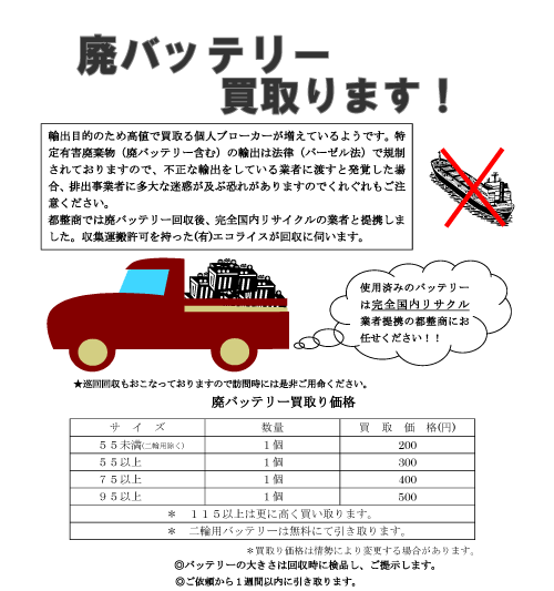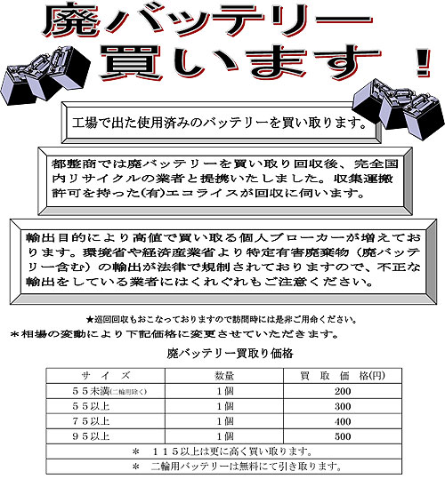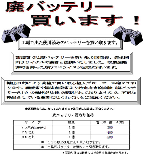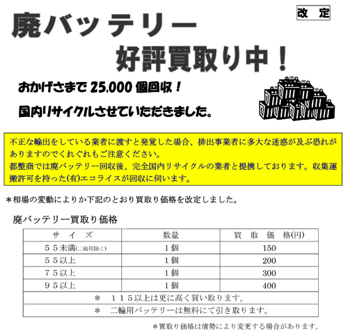 ■廃バッテリー及び使用済みアルミホイール買取り価格改定のお知らせ