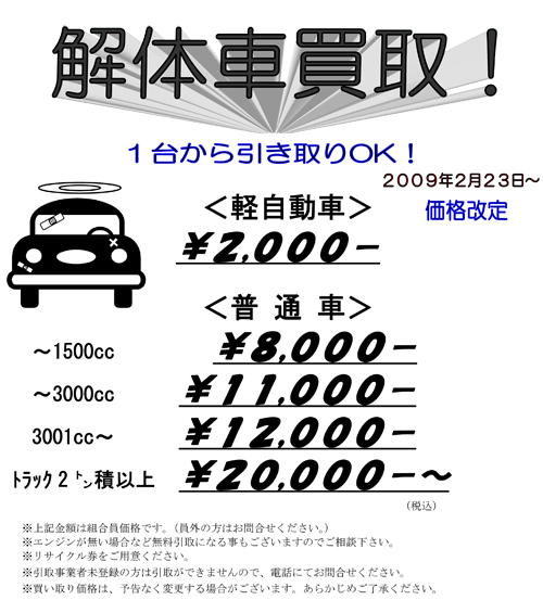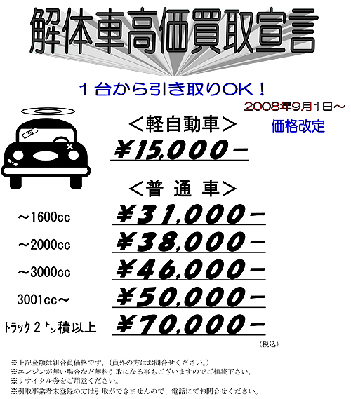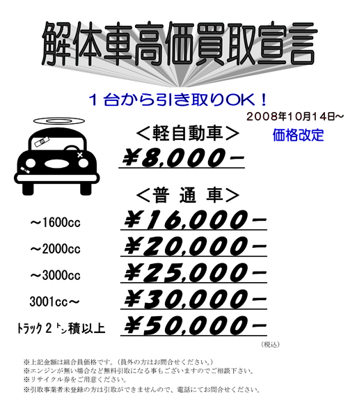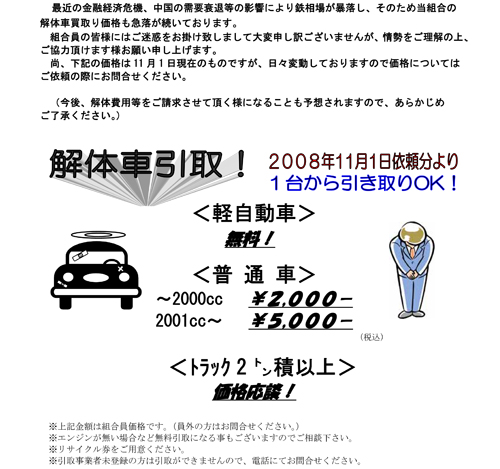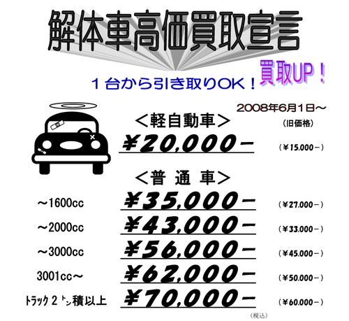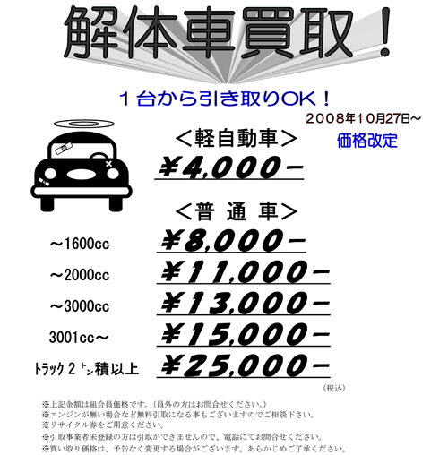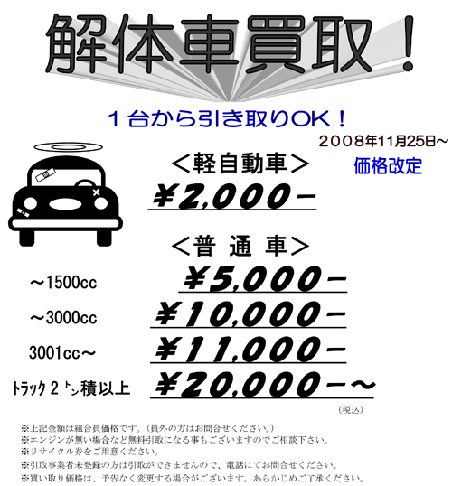 ■「11/1より価格改定」〜解体車1台から引き取りOK!〜