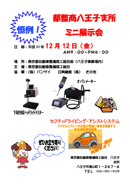 お問い合せ先:東京都自動車整備商工組合 多摩支所 電話:042-526-0771