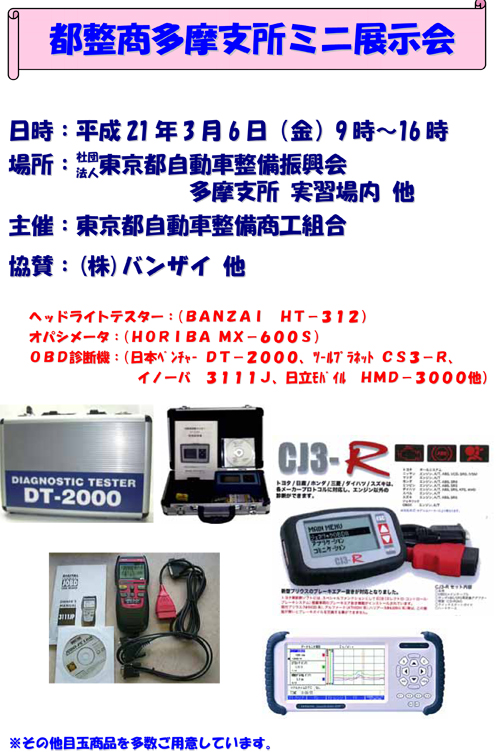 「ヘッドライトテスタ」「冷え爽快」「日立OBD新型テスター」実演販売!