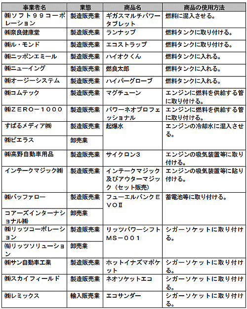 ■自動車の燃費向上等を標ぼうする商品の製造販売業者ら19社に対する排除命令について