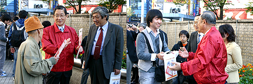 街頭ではパンフレットを配布。質問を投げかけられることも。