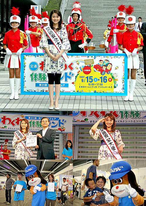 平成19年9月15日(土)、16日(日)の2日間、文京区後楽園の東京ドームシティプリズムホールにおいて「第31回交通安全フェア」が開催された。 このイベントは秋の交通安全運動の一環として行われるもので、内閣府、首都交通対策協議会、交通安全フェア推進協議会の主催により、体験型イベントや各種展示を通して交通ルールや交通マナーの意識を高め、交通事故防止へ繋げることを目的としたもの。昭和52年から毎年実施され、今年で31回目を迎える。 イベント初日には、女優・キャスターとして活躍されている小林麻央さんが「一日交通安全大使」に任命された。小林さんは、学生時代に同級生を交通事故で亡くした経験から「交通事故のニュースを読み上げるときは胸が締め付けられる」と語り、交通ルール遵守と交通安全を強く会場にアピールした。 昨年に引き続き(社)日本自動車整備振興会連合会が「自動車の点検整備ブース」を展開。てんけんくん着ぐるみによるデモンストレーションのほか、児童向けに作成された「てんけんくんのぬりえ」や、大型スクリーンでのVTR上映を通して整備業界の交通安全への役割と、ユーザーの定期点検整備の重要性について来場者にアピールしていた。
